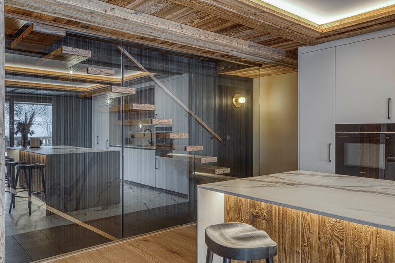 The Le Faon appartment features spacious rooms fitted with equipment and furnishings selected with a love of well-being in mind. On the outside terrace, a Jacuzzi invites you to bask facing the Aravis mountains, while inside, comfortable seating promises warm moments by the fireplace or around the vast dining table. Spacious and functional, the kitchen with its central island offers a convivial space where family and friends can gather for breakfast or to prepare meals together. Just a few steps away, each of the 4 bedrooms has its own bathroom and a unique design, for a nuptial setting as unique as it is relaxing. Finally, for the ultimate in comfort, in winter, guests on ski holidays will be delighted to find a ski room with heated changing rooms and laundry facilities, for untroubled days on the slopes.