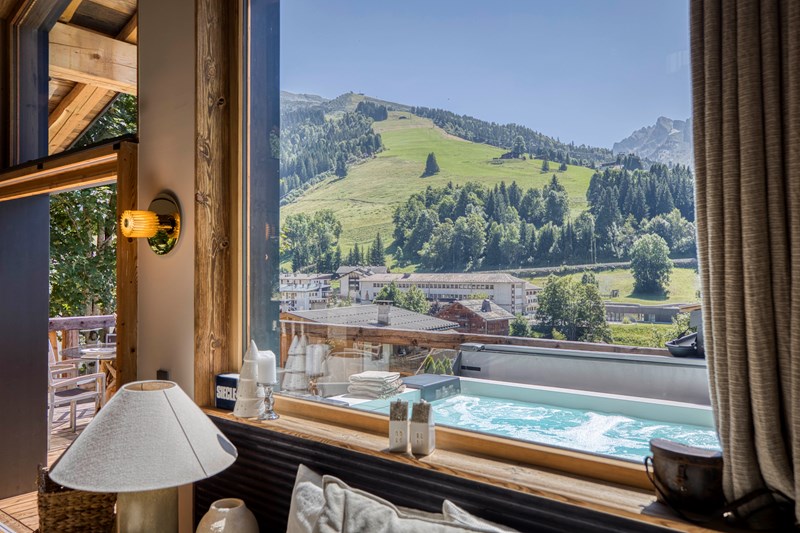 Nestling under the rooftops, Le Renne appartment boasts spacious rooms with high ceilings, elegantly decorated with a skilful blend of wood, stone and art deco. All the way through to the bedrooms, each with its own refined yet comfortable decor. Another delicacy is the creation of a reading area with a relaxing cocoon on the mezzanine floor, to the delight of young and old alike. And let's not forget yet another exclusive feature: an unobstructed view of the village of La Clusaz and the estate from the balcony, where a jacuzzi awaits travelers...